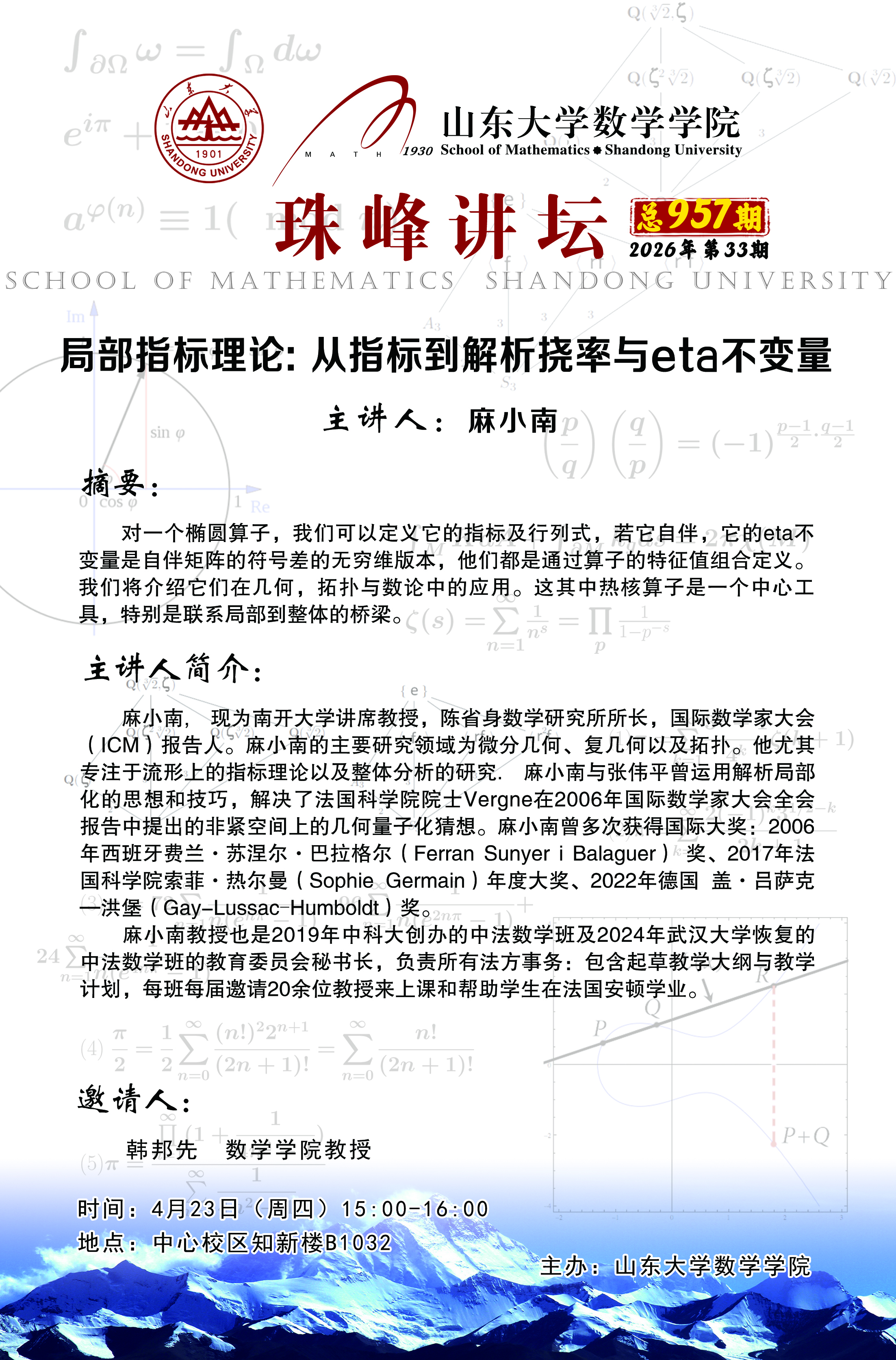 下一条:2026世界杯官网珠峰讲坛第956期:椭圆偏微分方程的向量场方法介绍