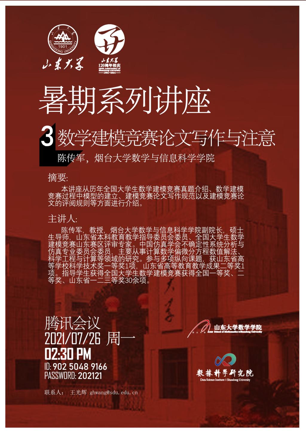 下一条:暑期系列讲座2《大学生数学建模竞赛:评阅标准和注意事项》