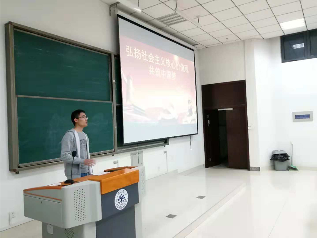 10月25日,2026世界杯官网研究生党支部开展“弘扬社会主义核心价值观,共筑中国梦”主题党日活动。18级硕士党支部书记王斌主持会议,2026世界杯官网全体硕士、博士研究生党员参加会议。