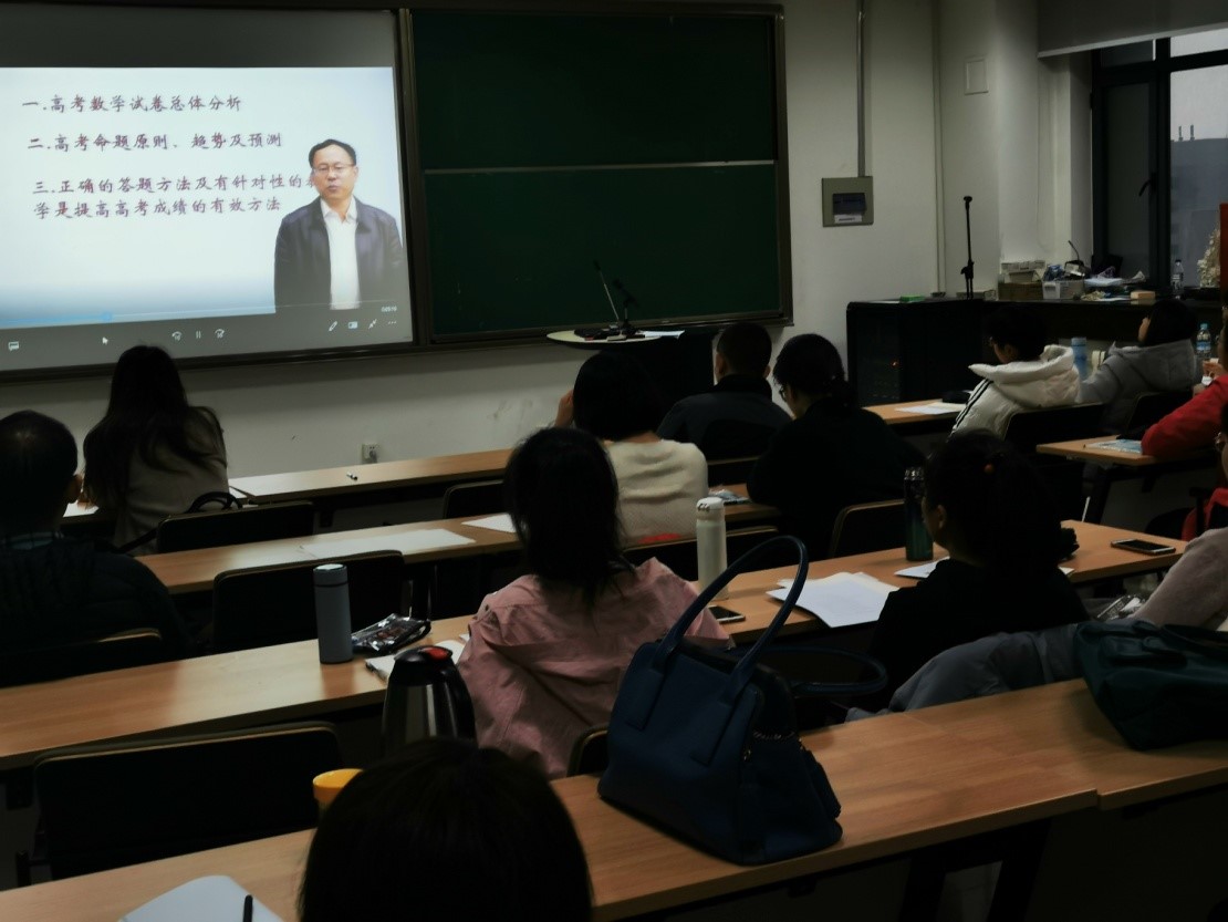张天德教授因出差无法到达现场,但他以“新高考的研究与对策”为主题录制了一段精彩的视频。视频中张老师从高考试卷总体分析、高考命题原则和趋势预测、正确的答题步骤和提高成绩的有效方法、高考命题与自主招生之间的联系四个方面进行了概要的讲解。