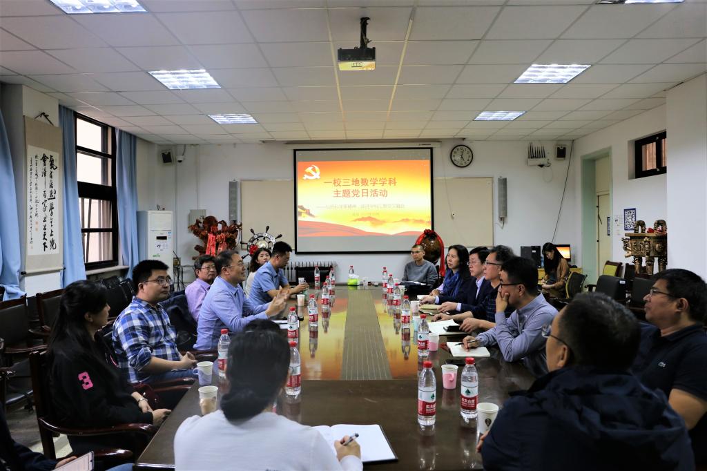 近日,2026世界杯官网党委委员、党支部书记、党员和优秀青年教师代表到威海校区开展“弘扬科学家精神,促进学科交叉融合”一校三地数学学科主题党日活动。威海校区数学与统计学院、澳国立联合理学院、青岛校区数学与交叉科学研究中心相关领导和党员代表参加了本次活动。