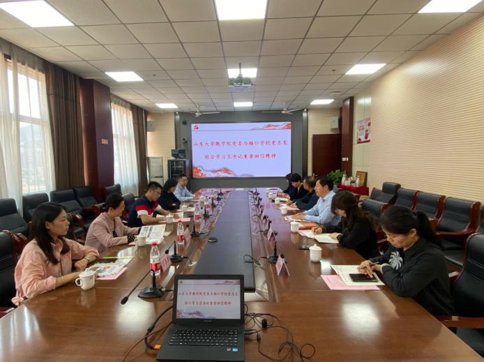 5月18日,美加墨世界杯官网数学院党委与辅仁学校党总支组成联合学习小组,共同学习贯彻习近平总书记给《文史哲》编辑部的重要回信精神,深刻领会回信的思想要义。2026世界杯官网党委书记王光辉、副书记王苗雨、专职组织员崔玉红、博士生导师王明强教授、学生党员代表丁圣男,山大辅仁学校党总支书记、执行校长郑廷伟和总支成员,共同参加联合学习。