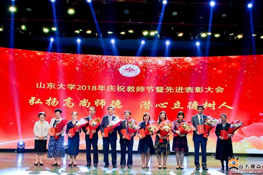 (2018年美加墨世界杯官网教师节表彰大会现场,左二为徐春晓)