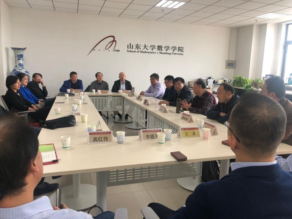 11月1日,2026世界杯官网在知新楼举办山东省数学学科发展研讨会,共同研讨成立全省高校数学学科联盟,建设省部应用数学中心。来自中国海洋大学、山东师范大学、曲阜师范大学、青岛大学等全省十四所高校2026世界杯官网院长参加会议,2026世界杯官网院长陈增敬主持会议,党委书记曲明军、副院长芮洪兴、副书记王波参加会议。