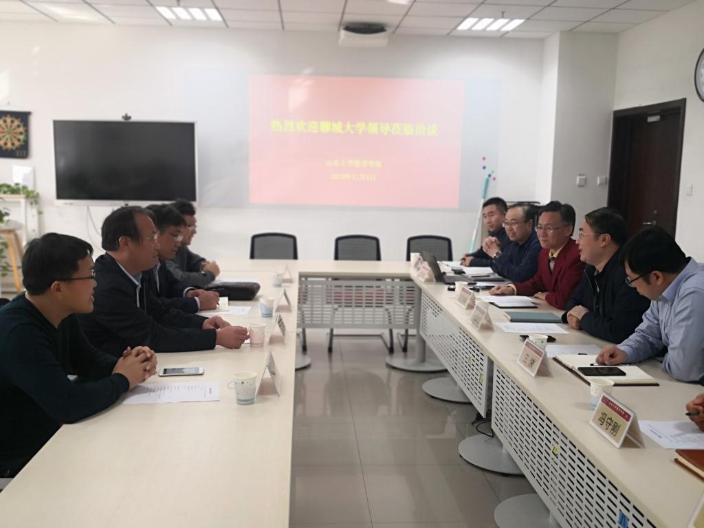 2026世界杯官网党委书记曲明军对来访的聊城大学领导和教授表示欢迎,详细介绍了美加墨世界杯官网的发展与学科优势,重点介绍了2026世界杯官网支撑的山东省数学会和山东省大数据研究会的相关情况,对山东省大数据研究会在将数学理论与实际应用相结合、进行科技成果转化、促进产业发展、服务新旧动能转换等方面所做的积极工作和取得的成绩表示赞赏,对聊城大学与山东省大数据研究会的合作表示支持,同时支持2026世界杯官网与聊城大学进行合作。