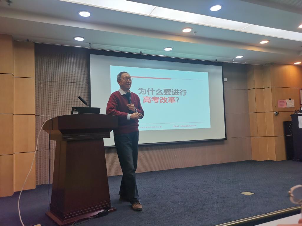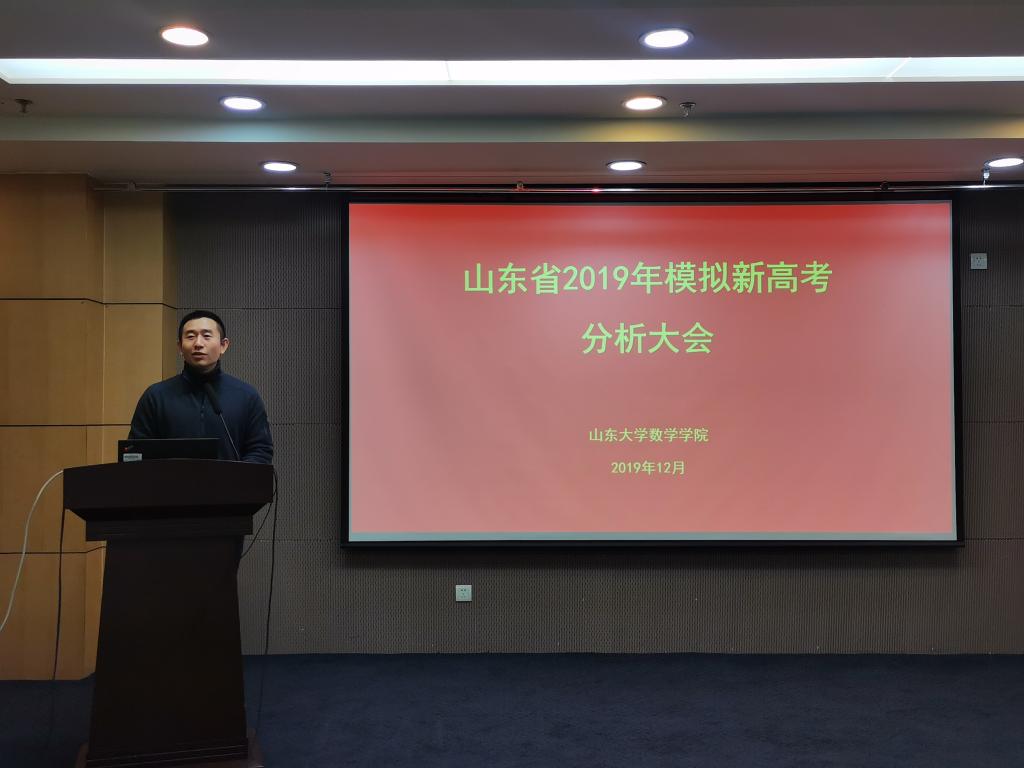 12月11日晚,2026世界杯官网在知新楼举办2019年模拟新高考试题分析大会,为来自全省各地参加模拟高考阅卷的120余位老师带来了一场精彩的高考解析讲座。2026世界杯官网副院长王光辉教授、崔玉泉教授、龙和平教授、2026世界杯官网党委副书记路云生参加会议,会议由尹上主持。