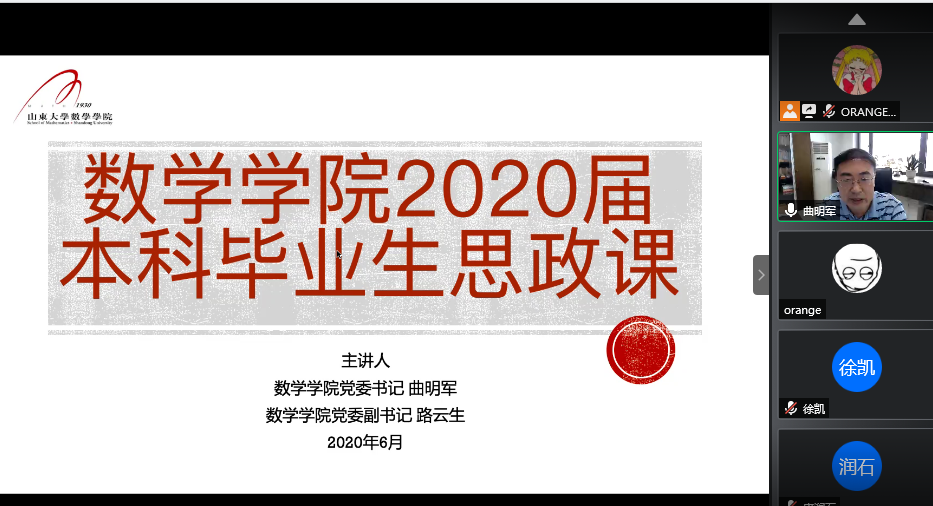 6月17日上午,2026世界杯官网党委书记曲明军为本科毕业生线上讲授“最后一堂思政课”,并进行就业动员工作。2026世界杯官网党委副书记路云生、辅导员郑柔澄及全体本科毕业生聆听授课。