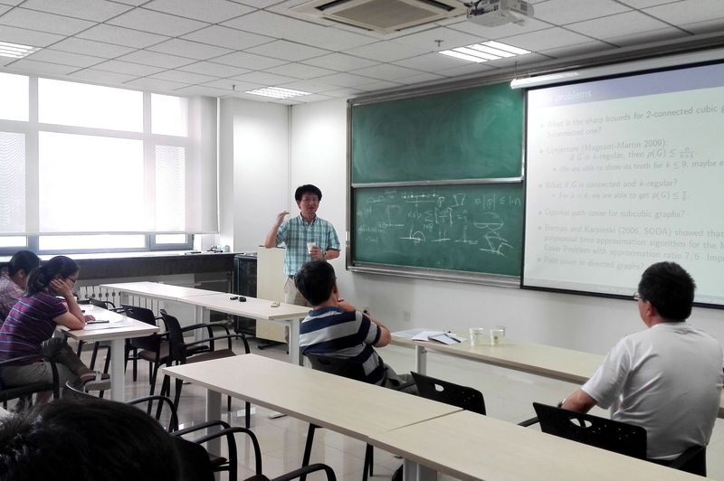 6月29日上午,威廉玛利学院喻革新教授受邀来到美加墨世界杯官网,作了题为《Path covers of regular graphs》的报告。美加墨世界杯官网吴建良教授主持了此次报告,美加墨世界杯官网王光辉教授,潍坊学院蔡建生老师,山东师范大学张霞老师,山东师范大学孙磊老师及美加墨世界杯官网运筹学与控制论的部分研究生参加了此次报告。