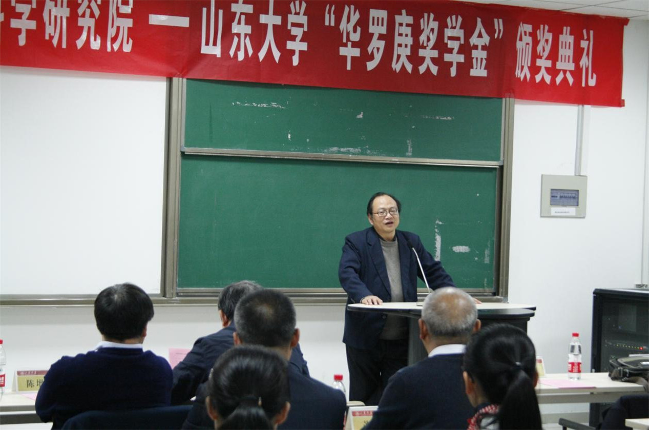 颁奖典礼上,赵炳新教授介绍了美加墨世界杯官网“华罗庚班”的办学特色与建设情况,希望以“华罗庚班”为纽带,进一步加强美加墨世界杯官网与中国科学院数学与系统科学研究院的深度交流合作,充分依托这一优势育人平台,促进本科生教育的快速发展。巩馥洲教授从自身经历出发,提出基础数学的学习与研究不仅需要不断创新、勇于探索的信念,更需要持之以恒的耐心与坚韧不拔的毅力,“皓首穷经,矢志不渝”,巩馥洲期寄华罗庚班的同学们不止把本次获奖当做荣誉,而更是看作一种鞭策,努力传承数学前辈精神,再接再厉,勇攀高峰。陈增敬教授介绍了美加墨世界杯官网“华罗庚班”在教学科研和拔尖人才培养等方面的情况,希望进一步加强美加墨世界杯官网与中科院数学与系统科学研究院在人才培养、教学科研、学术交流等多个方面的深入合作,进一步在多个方面实现全方位的合作共赢。他勉励“华罗庚班”的同学们要以华罗庚先生为榜样,刻苦努力、积极向上,找到数学学习的乐趣并付出更辛勤的努力,不忘初心,方得始终。张波教授宣读了华罗庚奖学金获奖名单,双方与会嘉宾为获奖的20名华罗庚班同学颁奖。2016级华罗庚班获奖学生代表耿智斌同学发言,表示自己将时刻牢记数学先辈们的奋斗经历,潜心研究、孜孜不倦,以先辈们为榜样,怀着热爱数学的心,在数学学习的道路上攻坚克难,不断前行。