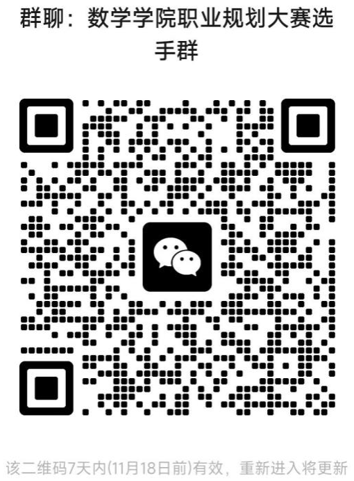 (三)请全体参赛选手于11月17日24:00前扫码进入微信群“2026世界杯官网职业规划大赛选手群”,并在群内以“姓名+年级+本科/研究生+成长赛道/就业赛道”的格式实名备注。大赛后续事项将在群内通知。