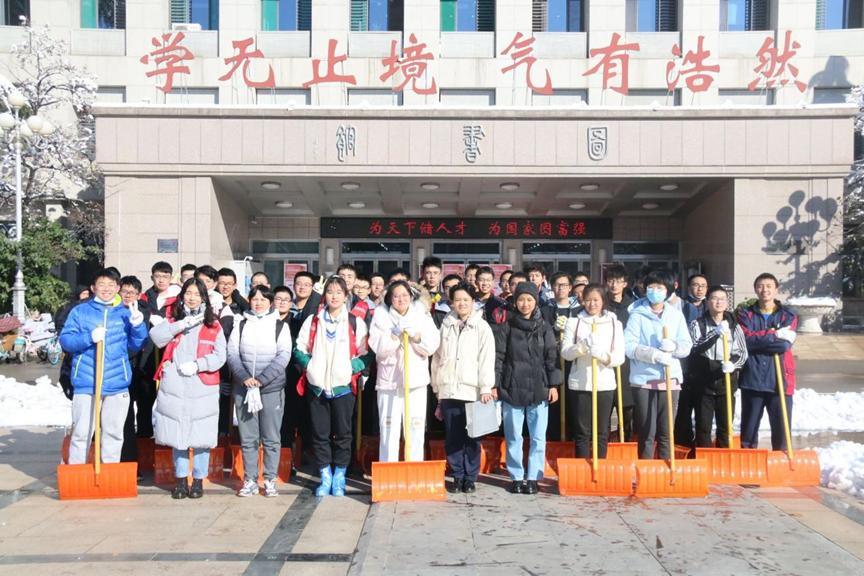 辅导员宋金灿老师与2021级基地班的全体同学参与了校园扫雪除冰活动。老师同学们用辛勤付出践行了数院青年们的担当,展现了数院学子的风采。