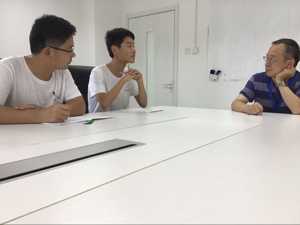 大家在一间会议室开始了这次的访谈,林东岱老师首先介绍了自己在数学道路上的历程,林东岱老师谈到,现在的研究方向并不是最初的设想,自己喜欢的是拓扑学,当初想要学拓扑学,不过林东岱老师没有完全定位于拓扑学,在学习代数拓扑的路线中,林东岱老师掌握了相当深入的代数知识,后来就演变成研究基础的代数。