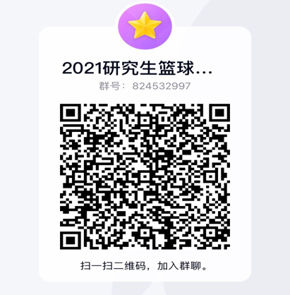 (五)请各学院1—2名参赛队员(最好是队长)或报名联系人加QQ群:824532997(2021研究生篮球赛负责人群),并更改群昵称为:姓名—学院—电话。后续事宜及相关通知将于本群发布。报名咨询电话:69185。本活动由美加墨世界杯官网研究生团工委作为学生组织协办。