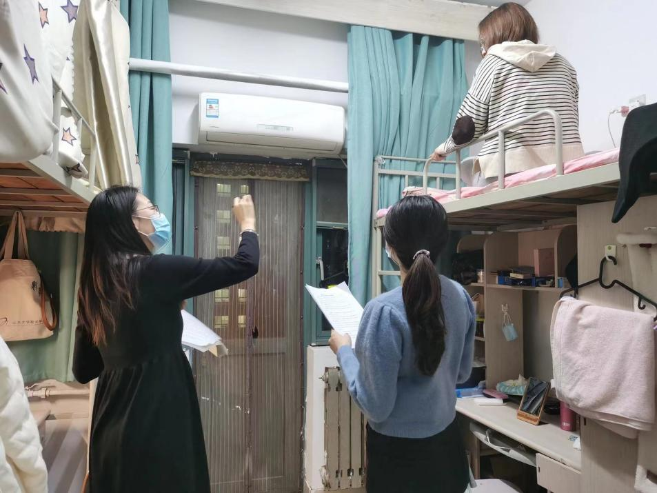 在走访过程中,研会成员针对是否安全用电、有无违章电器等情况进行了仔细排查,重点检查了是否有使用大功率电器、出门未拔电源插头、桌面线头混乱等容易被忽视的问题,如有发现,及时提出并当面督导整改。同时研会成员向同学们提出了宿舍安全用电的注意事项,告诉大家在使用电脑插座、接线板等用电设备时,要注意定期通风防潮、让电器适当断电休息。成员们还叮嘱同学们禁止使用违规电器、长时间出门时要关掉插排电源。最后,研会为每个寝室张贴了用电须知,提醒同学们注意防范各种安全隐患。