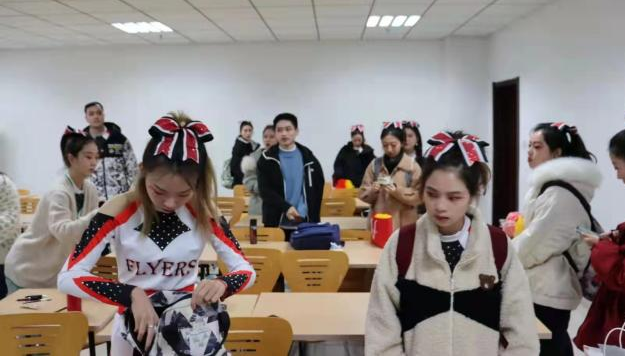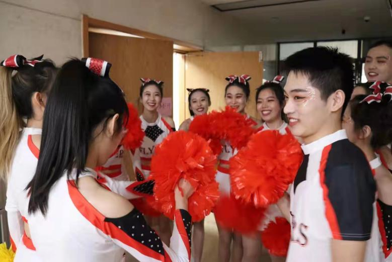 21日清晨,数学金融联队早早来到后台,在学姐们的协助下画好妆容换好队服整理好发型,满怀期待地进入候场室展开准备工作。而此时的观众席上,世界杯官网同学也早早就位,时刻准备为啦啦队成员们应援打call。
