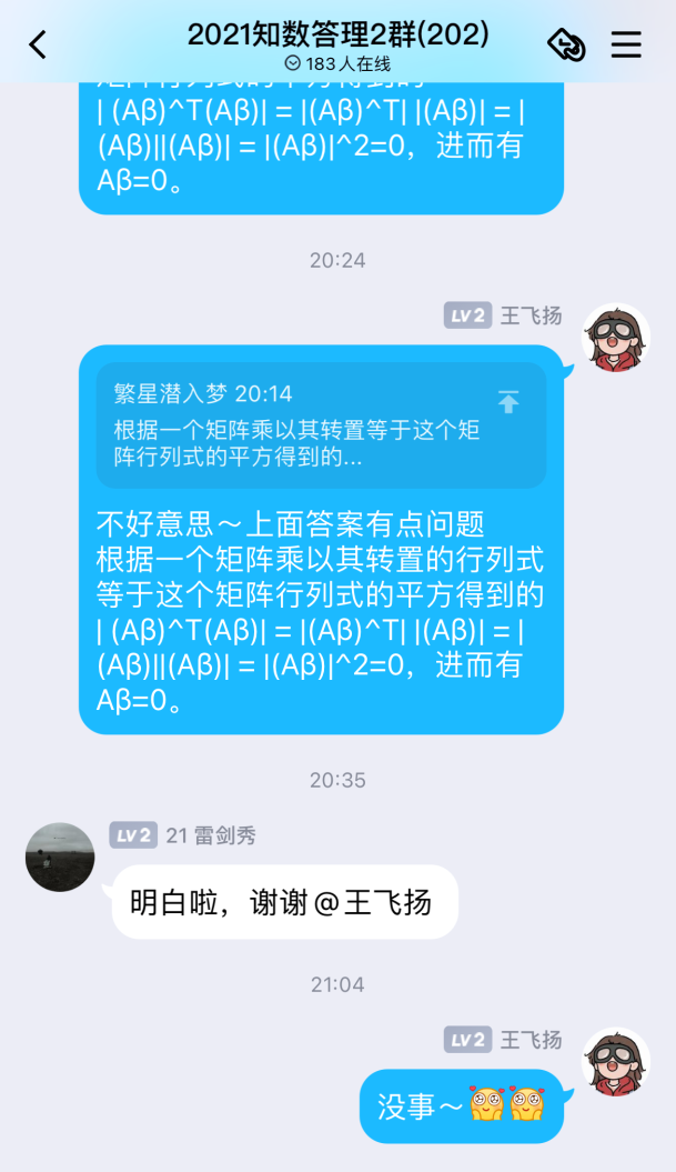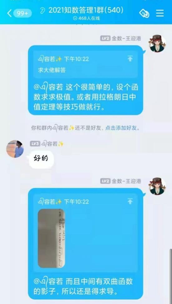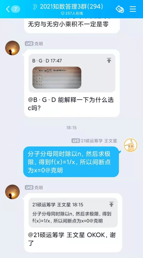 自活动开展以来,共收到来自全校一千四百余名同学加入答疑群的申请,2026世界杯官网“阿尔法”答疑志愿团队,平均每周解答疑问近两百条。志愿者们耐心地为同学们讲解定理证明,分享解题技巧,梳理答题思路,引导同学们由“被动接受”转向“主动思考”,在加深自己对数学基础知识理解的同时,体会到以自己所学服务、帮助他人的成就感与幸福感。活动开展期间,同学们积极讨论,勤于思考,不仅及时解决了在数学学习上遇到的问题,更提升了数学学习能力,激发了学习数学的积极性。