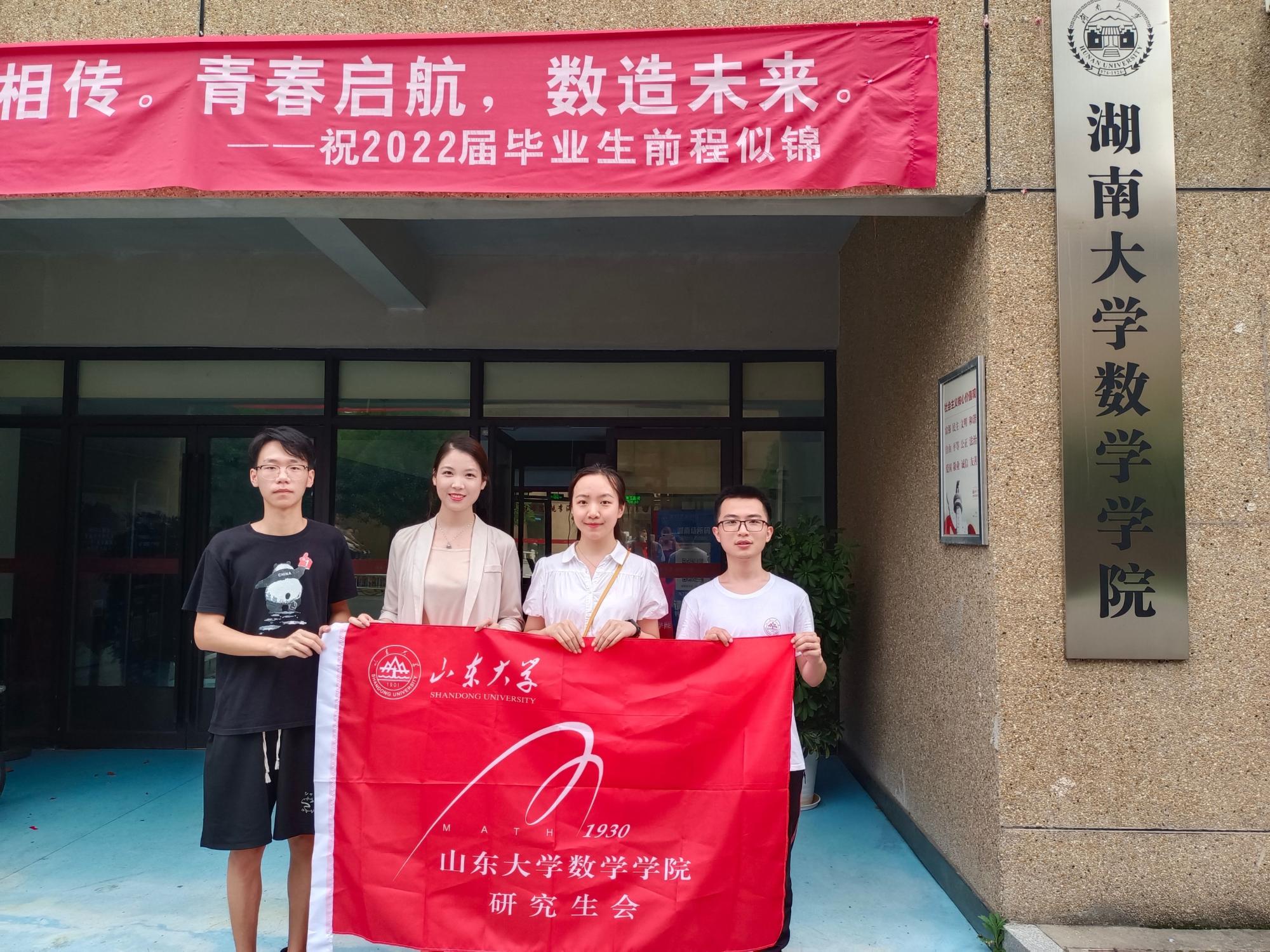 在对武汉大学的交流访问中,王子豪首先对美加墨世界杯官网研究生会主席团的到来表示热烈的欢迎,带领研会成员参观了武汉大学校园,讲述了武汉大学悠久的历史文化。随后,双方在会议室进行了交流学习,2026世界杯官网研究生会主席王玺祥从深化组织改革、聚焦主责主业和代表性工作三个方面对美加墨世界杯官网研究生会展开介绍,详细阐述了世界杯官网研究生会德智体美劳全面发展的工作体系,着重介绍了针对解决实际困难开展的就业领航与战疫同行系列活动和知数答理品牌特色活动。王子豪针对两校研究生会的异同点展开介绍,包含轮值主席制度、管培制度、将党建工作纳入研会工作等,重点介绍了学院承办的省级精品活动---研究生数学讲课比赛,活动历经十六载,日趋成熟和完善,参与度和认可度很高。随后双方就如何让活动生动而深入人心、如何提升同学的积极性、如何加强同学之间的联系、如何守正创新、如何完善权益平台等问题展开深入的探讨,并就德智体美劳五育活动进行分享与探讨,相互借鉴、相互学习,碰撞思维的火花。最后,美加墨世界杯官网研究生会主席团向武汉大学数学与统计学院研究生会赠送美加墨世界杯官网文创作为纪念,并一同在武汉大学数学与统计学院门前合影留念。在同湖南大学的交流学习中,双方对研究生会的组织建设、活动开展情况展开交流,一致认为活动关键在精,要开展让广大同学受益的深入人心的活动。会后双方互赠礼物,合影留念。