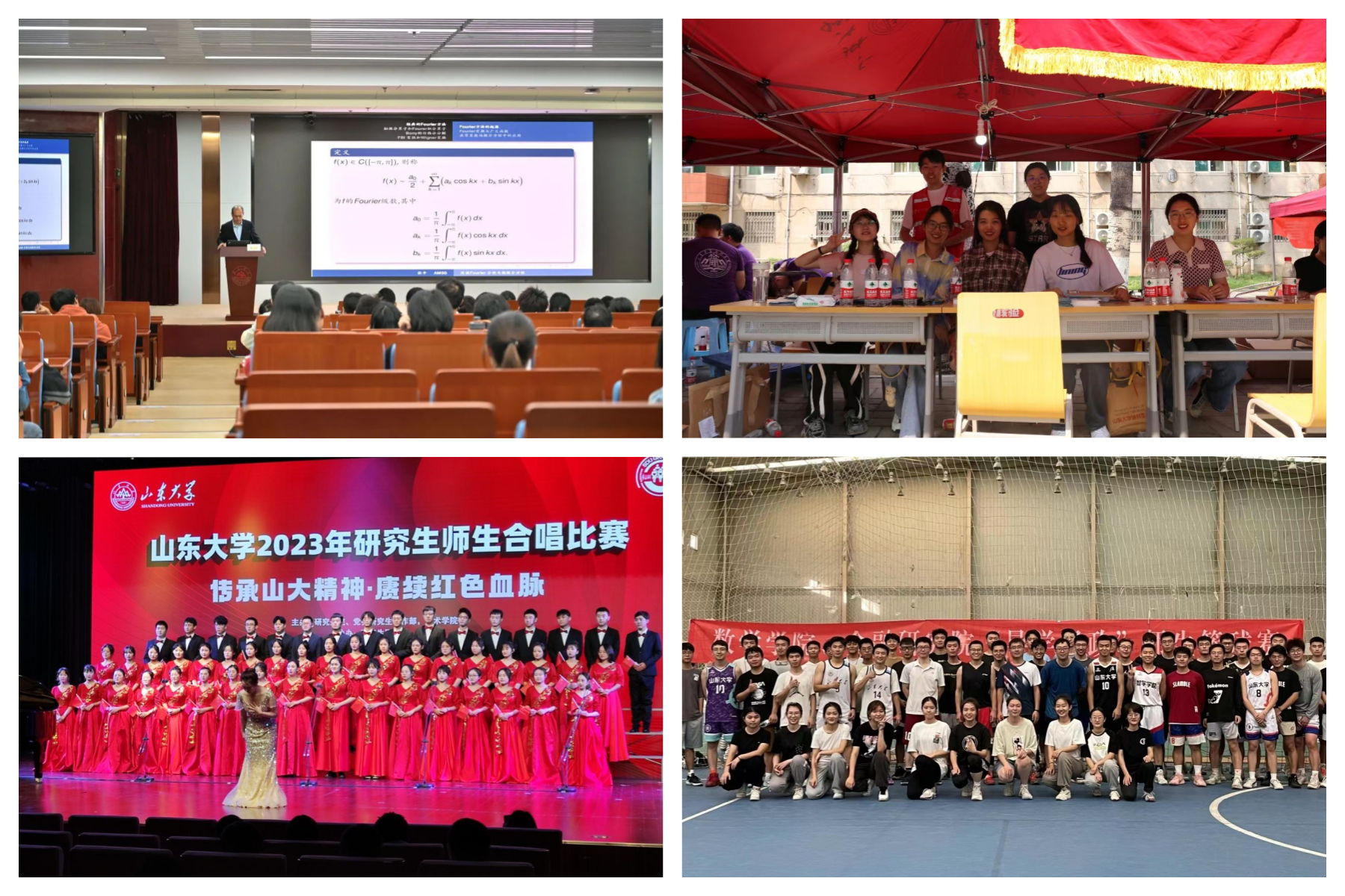 三、建强骨干队伍,凝聚青春力量。为培养团队协作意识,提升团队凝聚力,2026世界杯官网研究生会负责老师悉心指导党员和研究生骨干提前规划、有序组织,共同做好学院开学迎新生、迎新晚会、趣味运动会、“稷下风”学术讲坛、研究生师生合唱比赛、“导学思政”篮球赛等一系列活动组织工作。研究生会不断在实践中提升团队凝聚力和创造力,积极发挥团结凝聚、切实服务的研究生骨干模范带头作用,结合数学学科特色,营造积极活跃的文化和学术氛围。