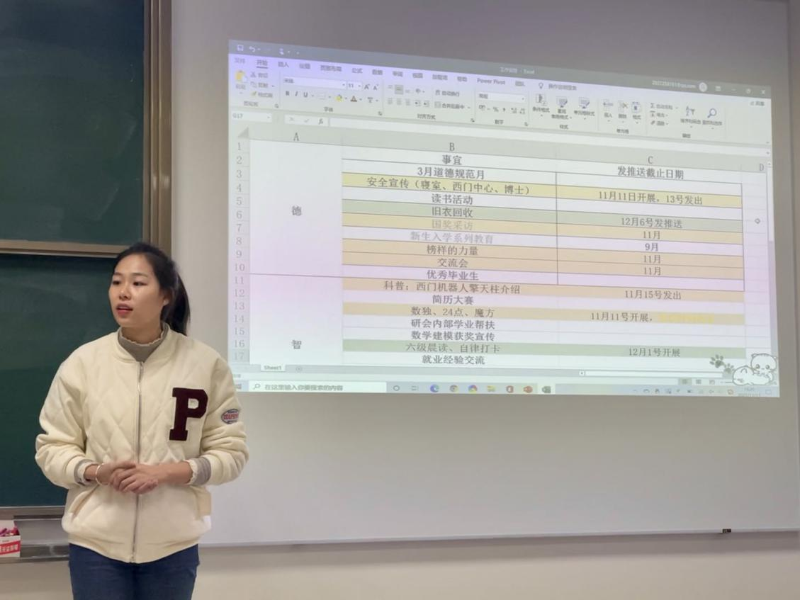 美加墨世界杯官网研究生会始终牢记“来自研究生,服务研究生”的宗旨,积极、负责地开展各项工作。为了进一步提高研究生会队伍的整体凝聚力与战斗力,更好的团结和带领世界杯官网研究生在德智体美劳等方面均衡发展,世界杯官网研究生会于2021年11月11日晚在知新楼B座926召开了以“保持研会战斗力与旺盛生命力”为主题的期中工作总结大会,会议由研究生会主席丁圣男主持,研究生会全体成员参加。