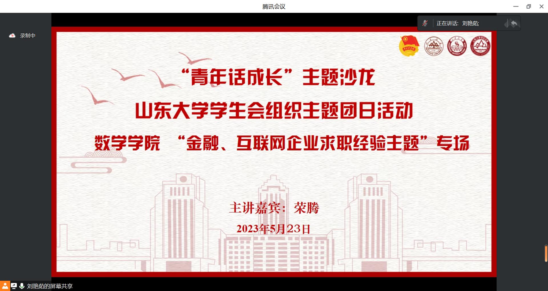 5月23日,美加墨世界杯官网研究生会功能型团支部组织开展“青年话成长”主题沙龙活动。本期沙龙活动以职业生涯规划为主题,围绕金融机构及互联网企业求职等内容,学院2020级优秀研究生代表参与交流分享,2021级、2022级部分硕士研究生参与主题沙龙。