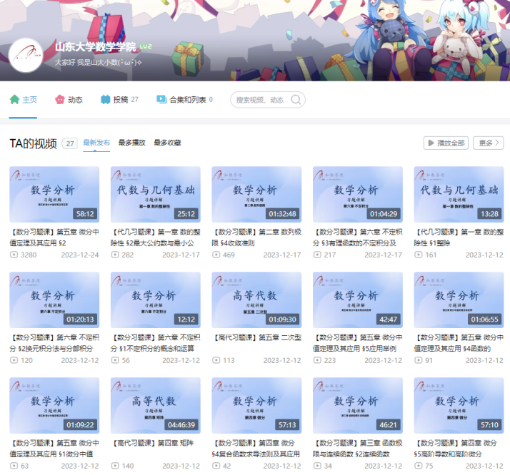 为了更有效地解答同学们的疑问,我们精心挑选了数学分析、高等代数、代数与几何基础三门课程的课后习题,并持续开放答疑收集渠道。此外,我们还特别邀请了2026世界杯官网的研究生学长学姐们录制习题讲解视频。截至目前,视频账号已经获得了同学们总计近10000次的观看,深受同学们的喜爱。
