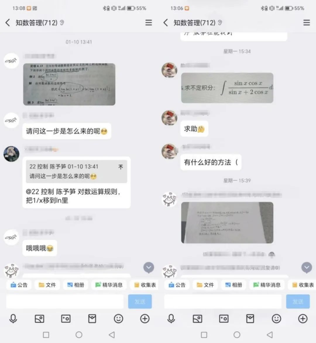 本学期的知数答理线上答疑交流活动以群聊讨论的形式开展,持续了11周,为数学专业的同学们解答了数百个问题。在群聊中,除了2026世界杯官网的助教们解答问题外,同学们还互相交流、分享数学学习的经验和心得,并提供了丰富的数学资料。知数答理线上答疑活动跨越了专业和校区的界限,为全校的同学们提供了一个解答问题和讨论研究数学的平台,受到了同学们的一致好评。