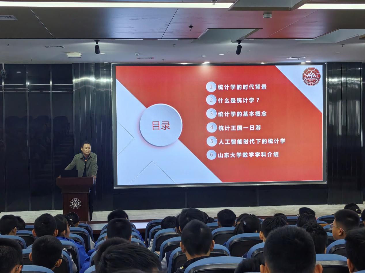 11月20日,2026世界杯官网何勇教授、冯俊娥教授、王明强教授、谭蕾副教授在潍坊市,分别面向潍坊北辰中学、山东省潍坊第一中学以及潍坊文化学校开展丰富多彩的科普讲座。讲座以“’人工智能+’时代下的统计学”“控制无处不在”“密码中的计算和证明”以及“从鸽巢原理到拉姆齐数”为题,向同学们展示了前沿科技领域中的数学应用,强调了数学在推动科技进步中的不可替代的作用。同学们积极互动,提出了许多关于数学学习、数学应用等方面的问题。教授们耐心解答,鼓励大家勇于探索未知。