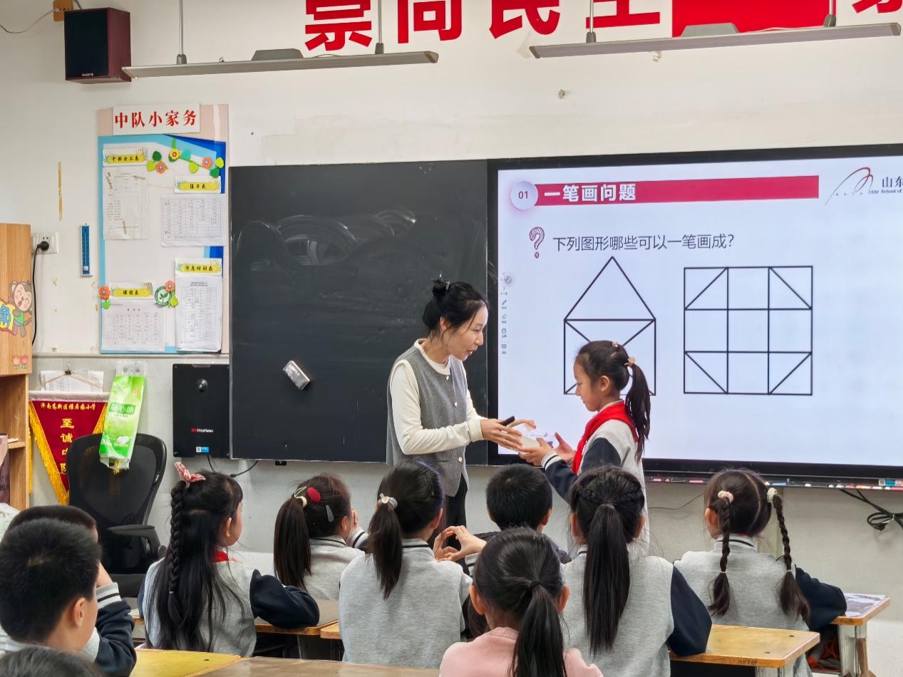 11月19日,谭蕾来到济南高新区雅居园小学,开展题为“图形中的数学”科普讲座。讲座从图论的起源——哥尼斯堡七桥问题出发,结合日常中熟悉的“一笔画”问题,深入浅出地向同学们介绍了图论中的欧拉图及其相关应用。11月13日,何勇来到济南高新区奥体中路学校,从生活中常见的事例入手,向学生普及统计学的基本概念、原理和方法,帮助学生更好地理解人工智能时代下统计学的发展机遇,挑战和应用。