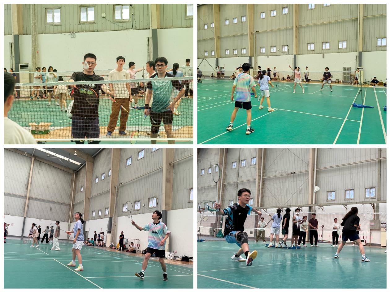 比赛采用小组循环赛与淘汰赛相结合的赛制。赛场上,各位选手各显身手,纷纷展现出自己的风采。羽毛球在他们的球拍下一次次划出优美的弧线,赛场上回响着一声声有力的击球声和运动鞋的摩擦声。经过一上午紧张激烈的小组循环赛角逐,12支队伍表现亮眼、奋力拼搏,最终A1“我不会打队”、B2“暂时没有想到队名对不队”、C3“发球下网是我不队”、D2“孙端辰不在也能赢队”4支队伍从各小组中脱颖而出,晋级四强。